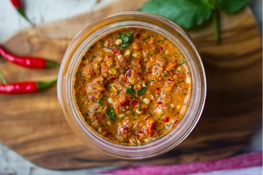 Fresh green chili sauce with garlic and herbs